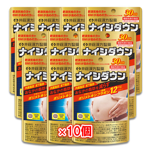 【機能性表示食品】ナイシダウン 60粒(30日分)×10個セット 【井藤漢方製薬】お腹の脂肪を減らすブラックジンジャー由来ポリメト...
