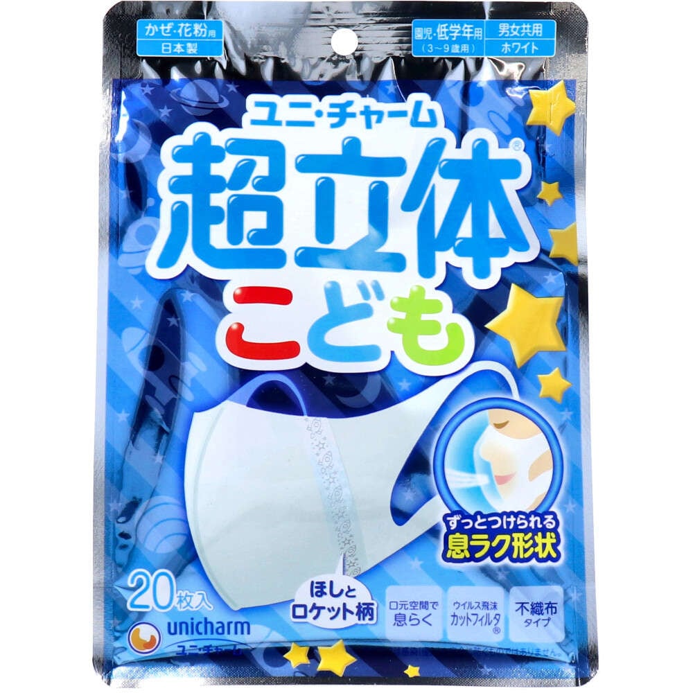 【不織布マスク】【キッズ】 超立体マスク こども用 園児・低学年用 男女共用 ホワイト 20枚入