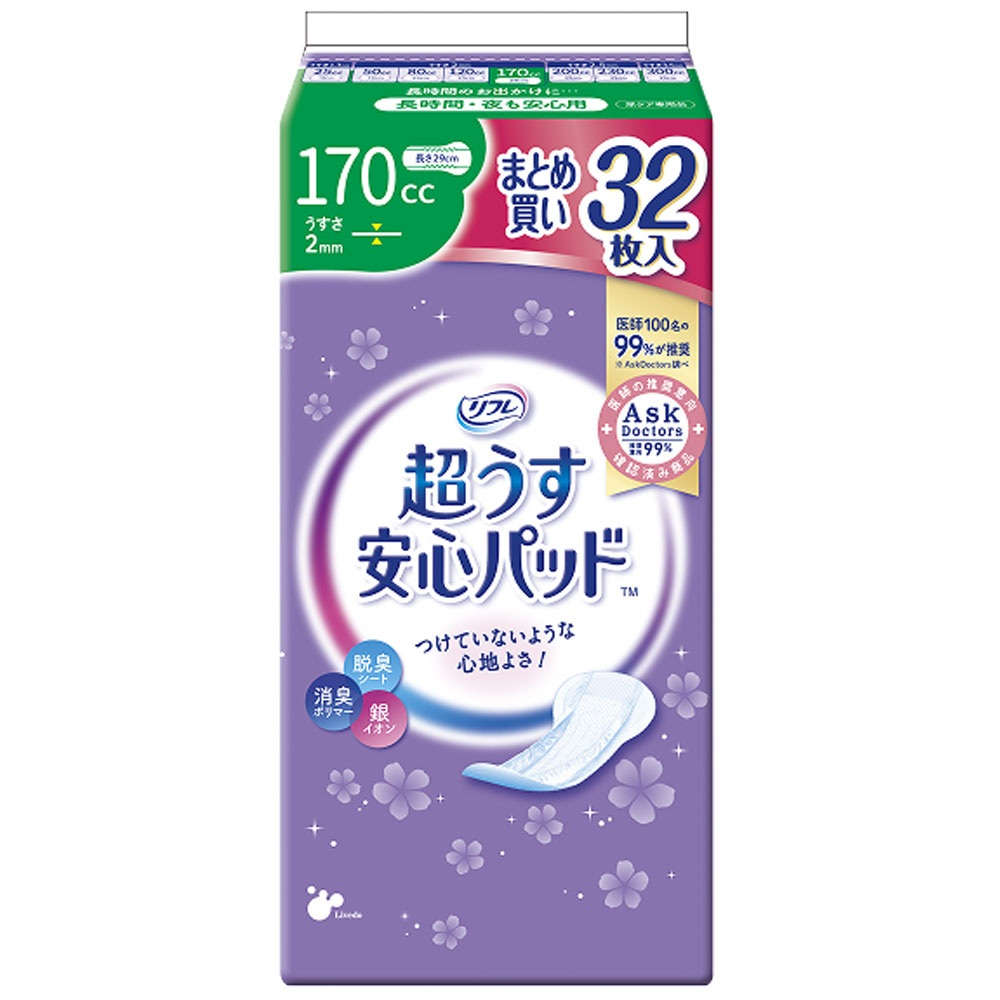 【尿とりパッド】リフレ 超うす安心パッド 長時間・夜も安心用 まとめ買いパック 32枚入