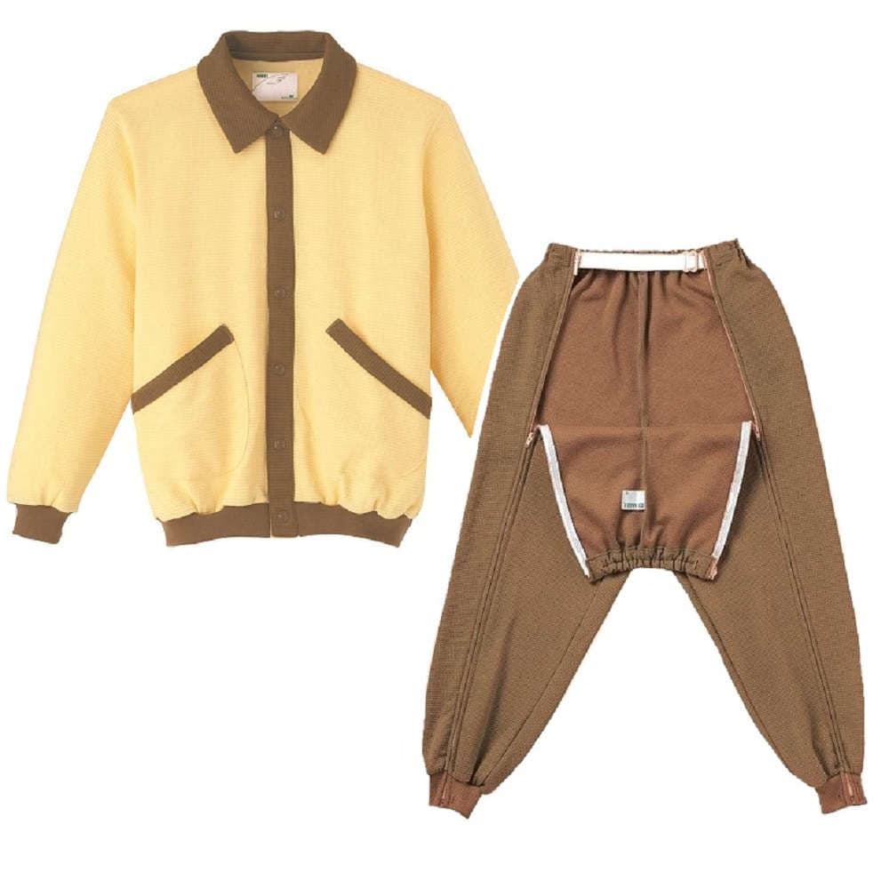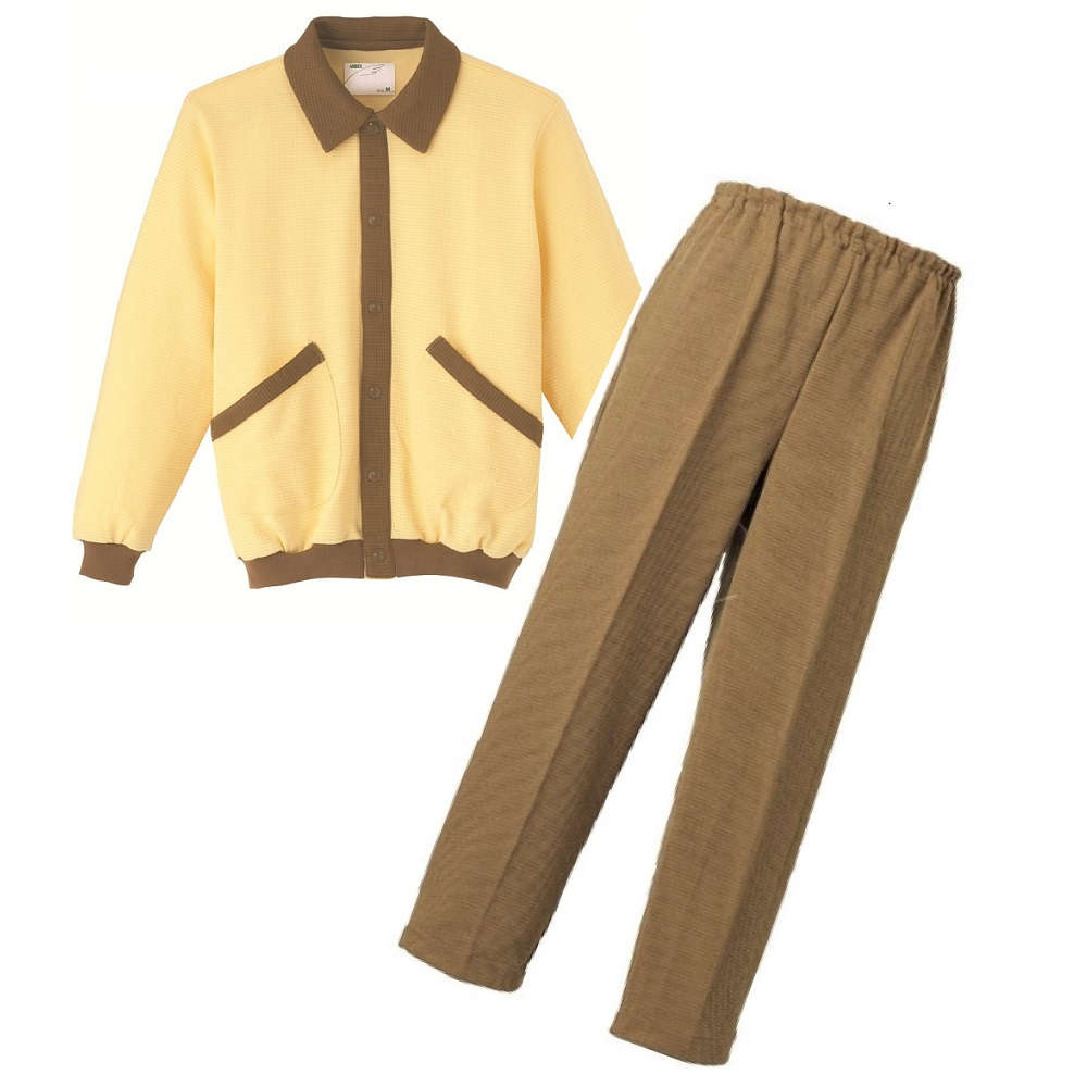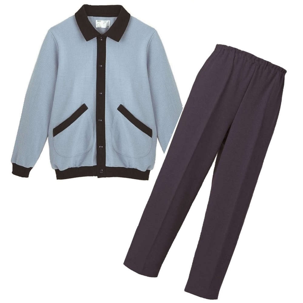 スクエアニット室内着裾リブ付き全開ズボン上下セット:サックス