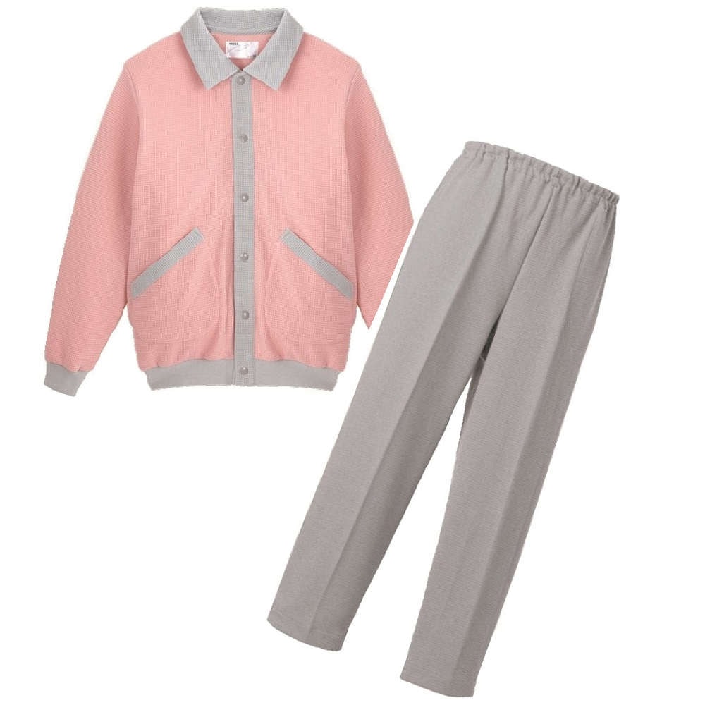 スクエアニット室内着裾リブ付き全開ズボン上下セット:ピンク