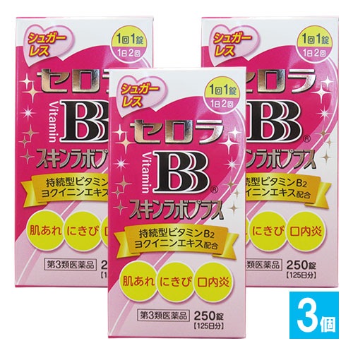 【第3類医薬品】セロラBBスキンラボプラス 250錠×3個セット【中外医薬生産】口内炎やにきびなど、皮膚のさまざまな症状の緩和に ...