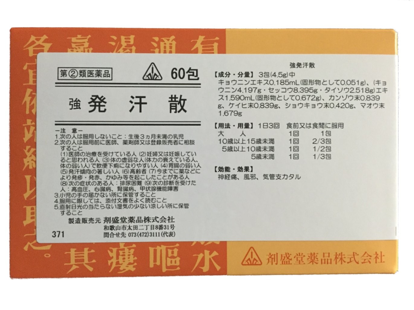 ◎★送料無料★【剤盛堂薬品】ホノミ 強発汗散 60包(きょうはっかんさん)【指定第2類医薬品】