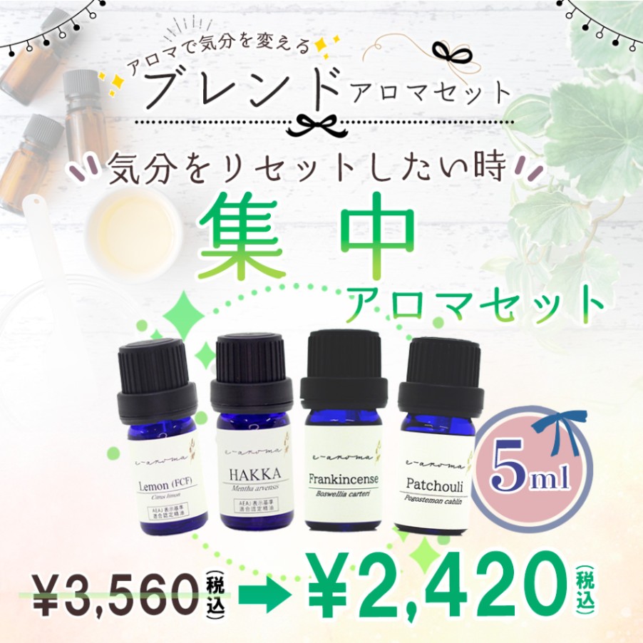誰でも楽しめる香料会社厳選のアロマブレンド体験セット 集中 したい時にピッタリの アロマ 5ml×4種〔 レモン / 和種薄荷 ...