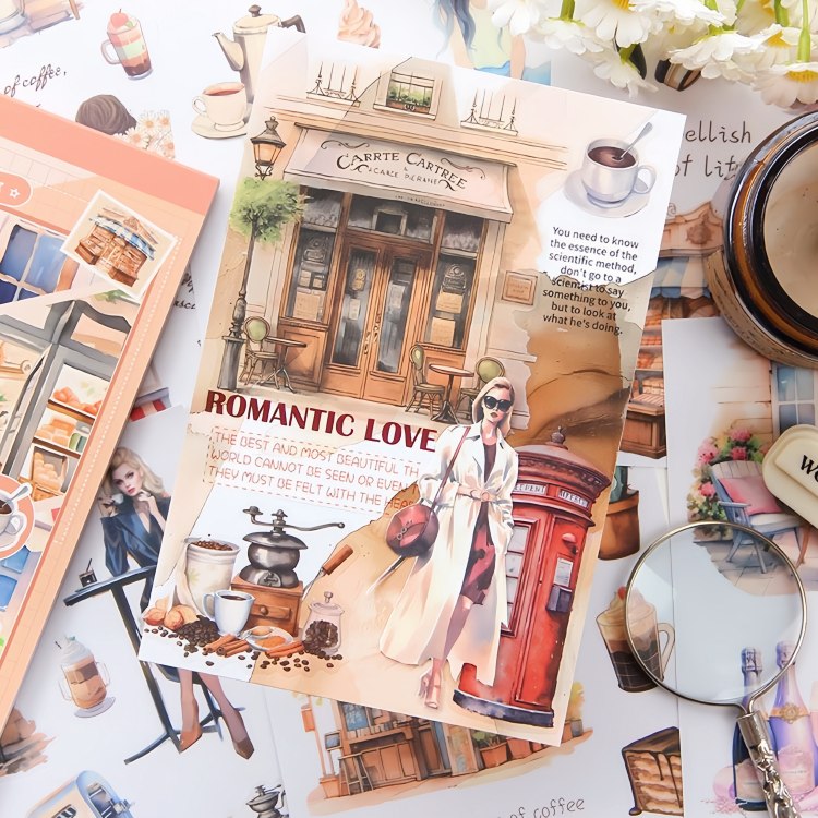 即日出荷 シールブック 型抜き 製本 異素材 ステッカーブック 背景シール コラージュ素材 おしゃれ 人物シール コーヒー 珈琲 ...