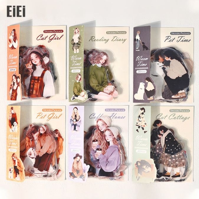 即日出荷 人物シール 猫 抱く 女の子 猫 ねこ 犬 いぬ 散歩 動物 本 読む 読書 珈琲 コーヒー 人物 手描き 少女 女性 ...
