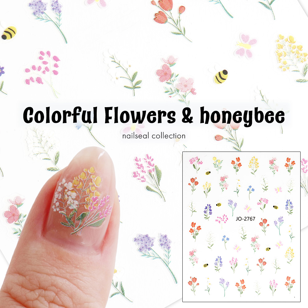 【ネコポス送料無料】ネイルシール カラフルフラワー&みつばちシール