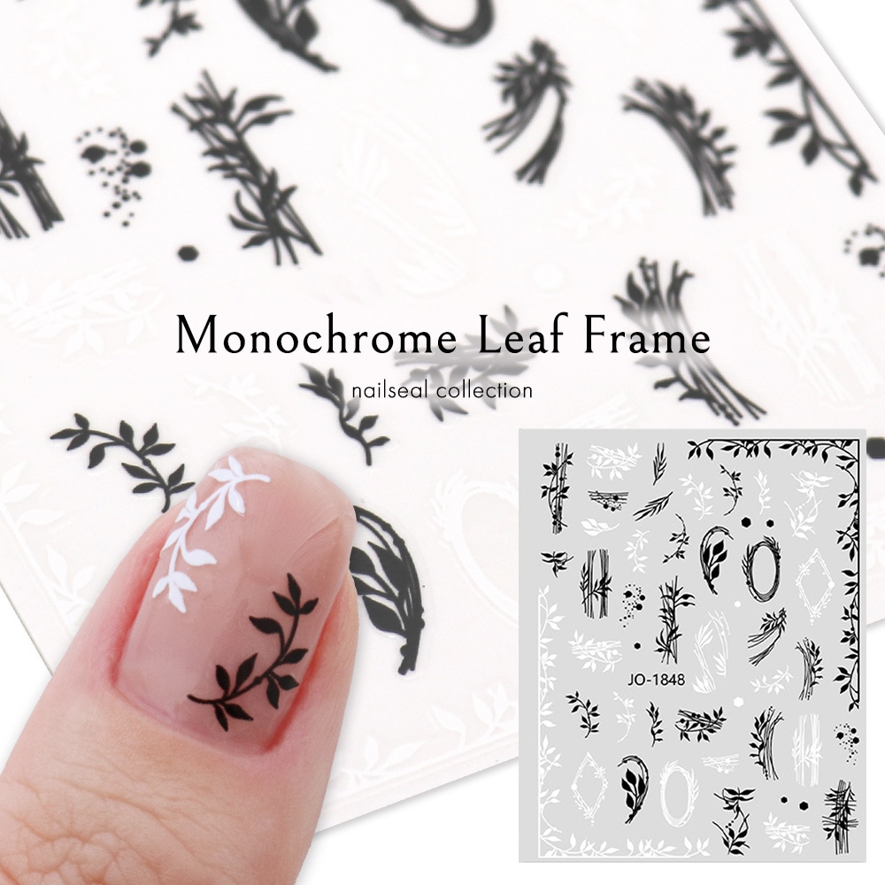 【ネコポス送料無料】ネイルシール モノクロリーフフレームシール
