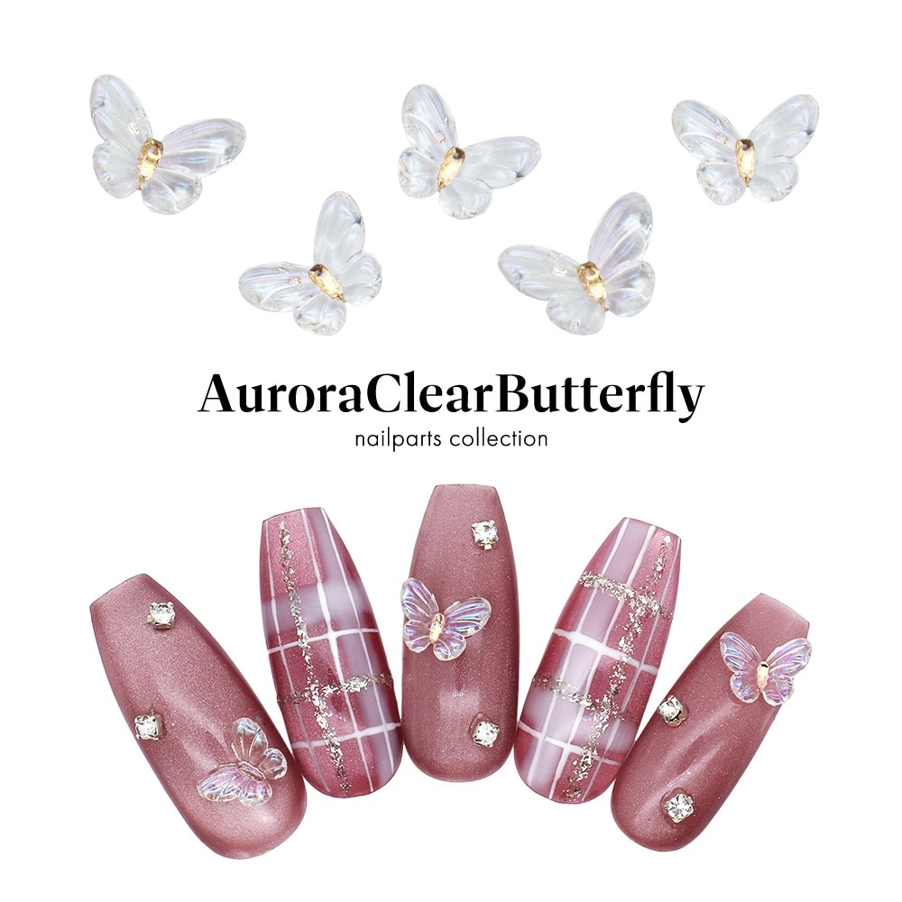 【ネコポス送料無料】ネイルパーツ オーロラクリアバタフライパーツ 5個入り