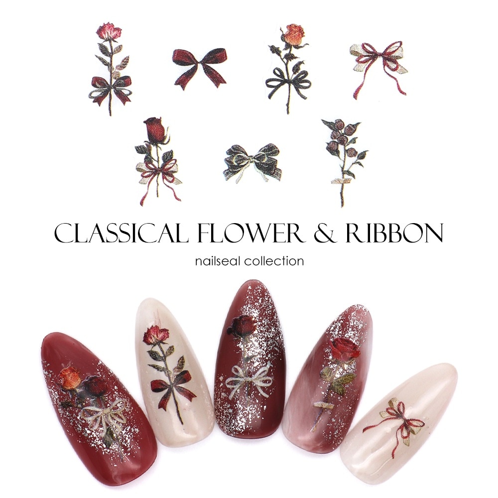 【ネコポス送料無料】ネイルシール クラシカルフラワー&リボンシール