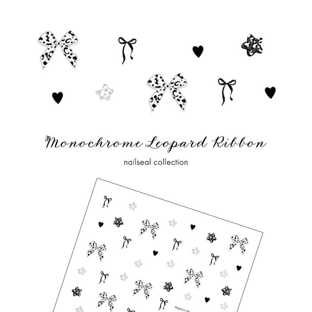 【ネコポス送料無料】ネイルシール モノクロレオパードリボンシール