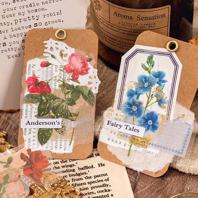 即日出荷 クリアシール 箔押しフレークシール 花 蝶 薔薇 ローズ 耐水 海外ステッカー コラージュ 素材 セット 30枚 カラー...