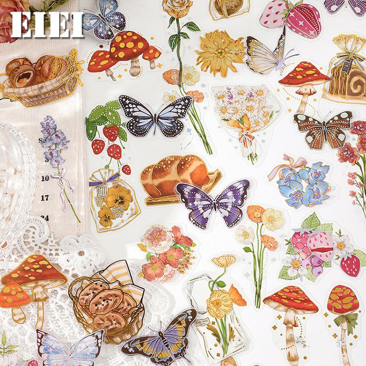 即日出荷 透明ステッカー 羽 蝶 茸 キノコ 花 海外ステッカー ◆40枚 全8タイプ◆透明シール 海外 耐水 シール バタフ...