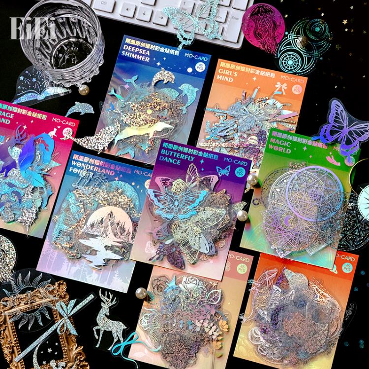即日出荷 金箔押し オーロラ ステッカー 透明シール オーロララメ シール 45枚 手帳デコ コラージュ 素材 ジャンクジャーナル...
