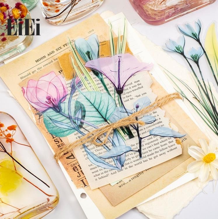 クリアシール ラージサイズ 特油 コラージュ素材 おしゃれ 花柄 瓶 シール 透明シール 半透明シール 神秘 幻想 水彩 手描き ...