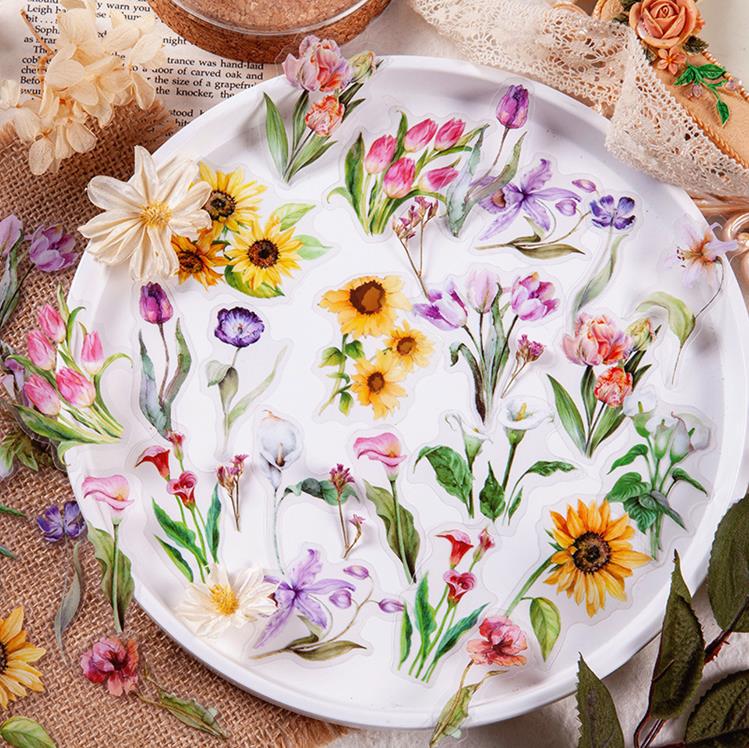 即日出荷 海外 ステッカー 透明シール リアル ひまわり アジサイ 紫陽花 薔薇 シャガ 英字 紅葉 数字 チューリップ 水仙 月...