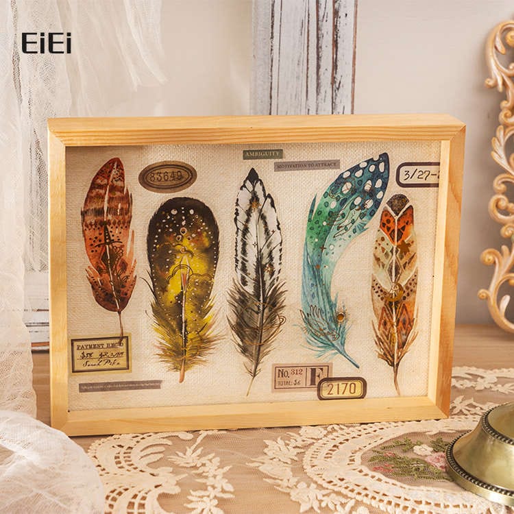 即日出荷 金箔押し クリアシール 羽 羽根 大きめ フェザー カラフル フレークシール コラージュ 素材 海外ステッカー 手帳 日...