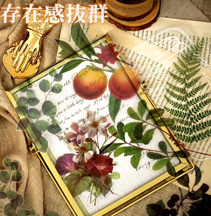 海外 大きい フレークシール ステッカー クリア PET素材 植物 花 フラワー 葉 果実 フルーツ 木の実 きのこ マッシュルー...
