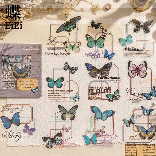 即日出荷 海外シール 透明シール 蝶 枠 英語 レース フレークシール コラージュ 素材 デコレーション 蝶々 バタフライ ク...