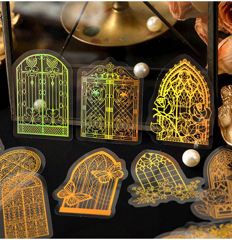 即日出荷 金箔押し クリアシール 透明シール 30枚 海外 コラージュ 素材 クリアステッカー ジャンクジャーナル デコシール オ...