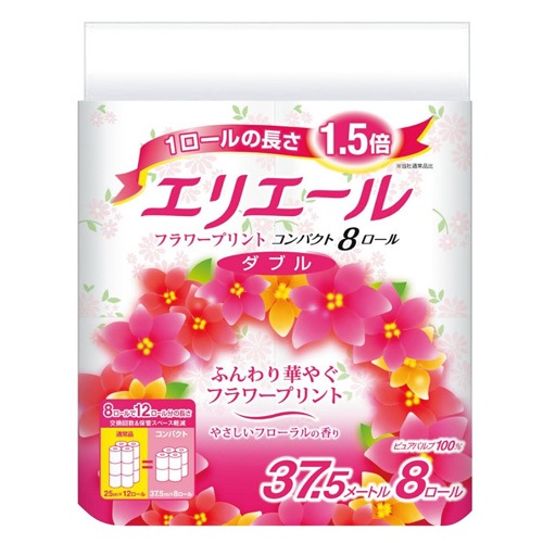 【送料無料】大王製紙 エリエールトイレットティッシューフラワープリントコンパクトW 37.5m 8R