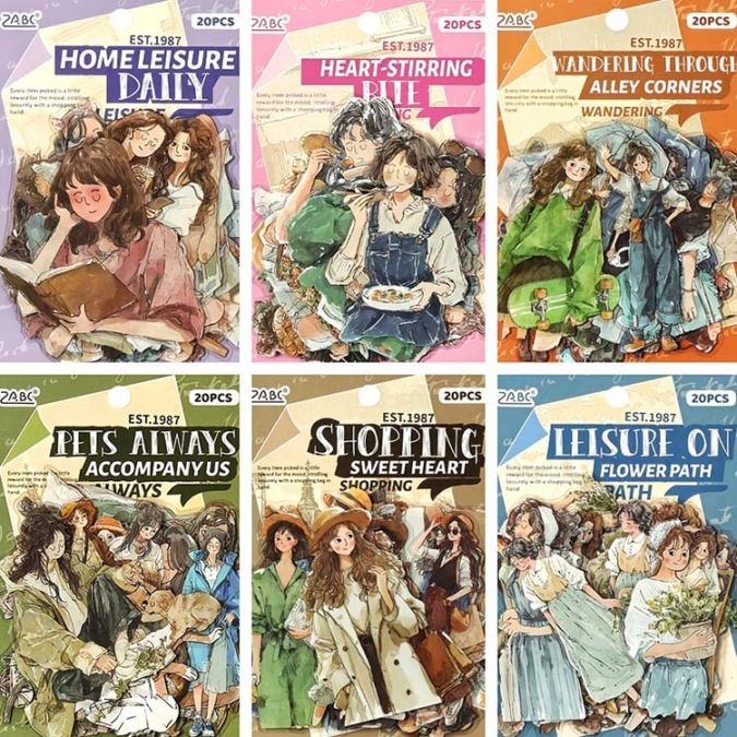 即日出荷 180枚 人物シール 大人 女性 通勤 花束 捧げる 女の子 猫 犬 少女 クリアシール 日常スタイル コラージュ素材 ...