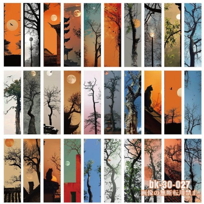 即日出荷 しおり 栞 30柄30枚セット ブックマーク 景色 夕日 月 猫 自然 木 樹木 エモい 紙製 おしゃれ 全てのイラスト...