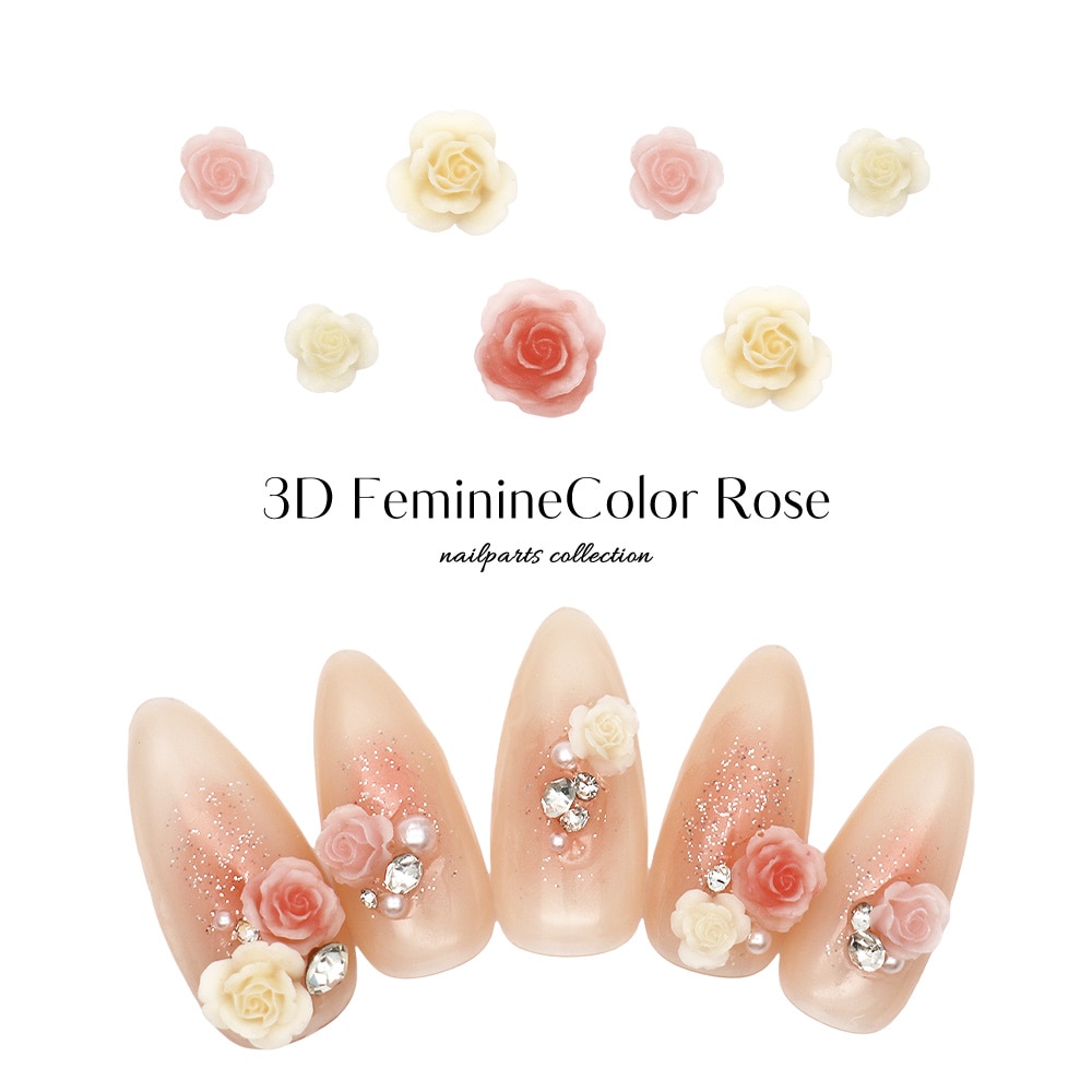 【ネコポス送料無料】ネイルパーツ 3Dフェミニンカラーローズパーツ 全4種 [10個入り]