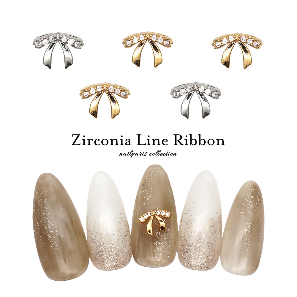 【ネコポス送料無料】ジルコニア製 ネイルパーツ ジルコニアラインリボンパーツ [シルバー 銀/ゴールド 金] 2個入り