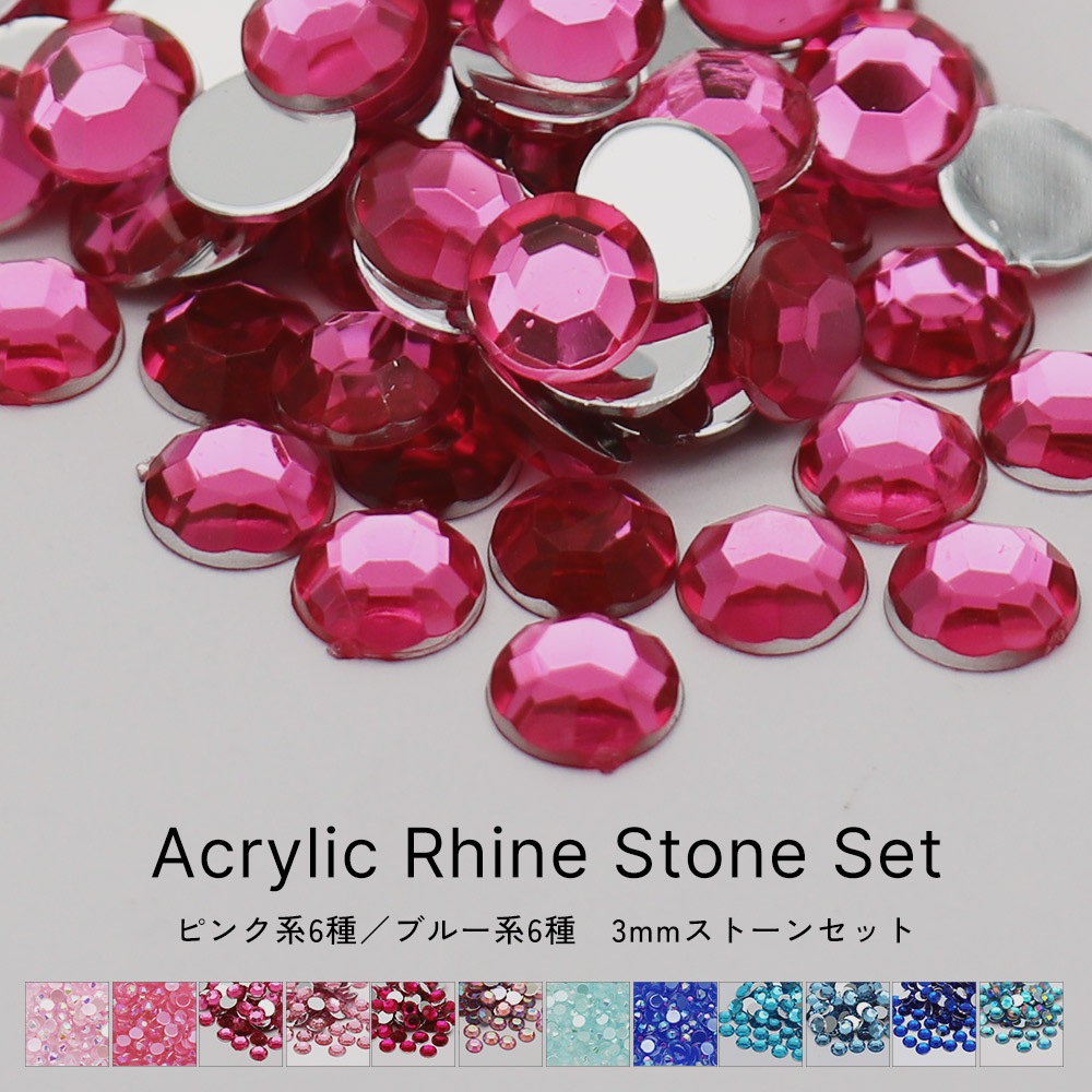 【ネコポス送料無料】ラインストーン 定番サイズ 3mm カラーストーンセット 全2種 推し活 デコ電 耳つぼ