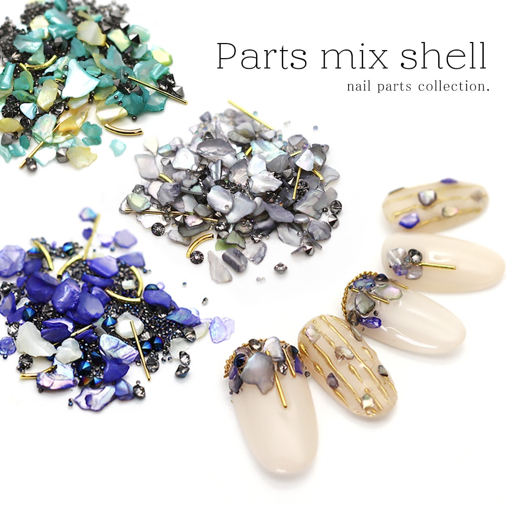 【ネコポス送料無料】ネイルパーツ パーツミックスシェル [グリーン/ブルー/グレー]