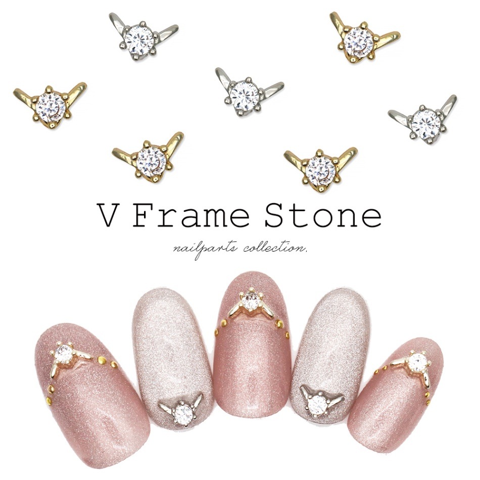 【ネコポス送料無料】ジルコニア製 Vフレームストーンパーツ [ゴールド/シルバー] 3個入り