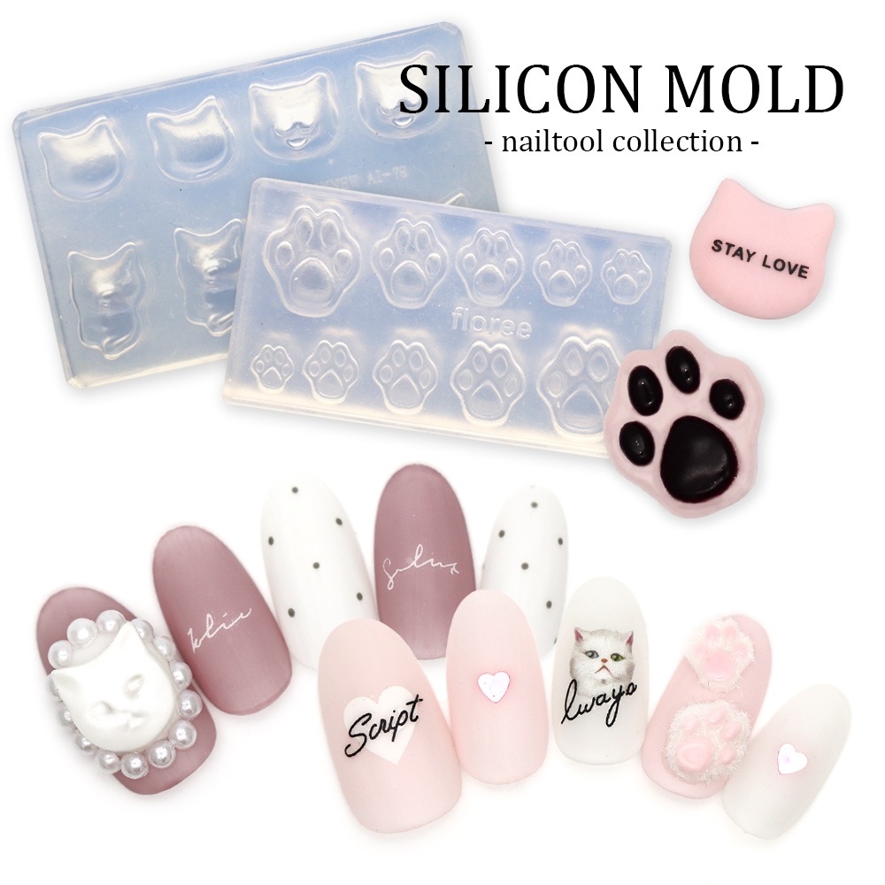 【ネコポス送料無料】ネイルツール シリコンモールド 猫 全2種