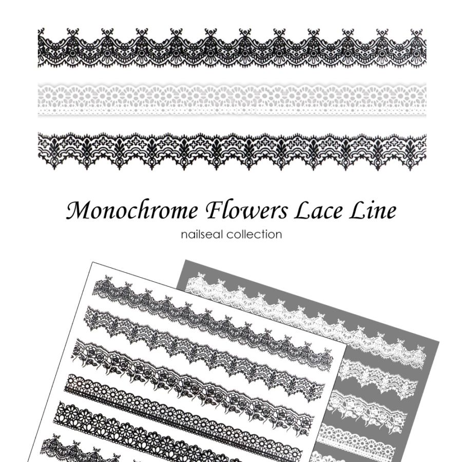 【ネコポス送料無料】ネイルシール モノクロフラワーレースラインシール [ホワイト 白/ブラック 黒] 全2色