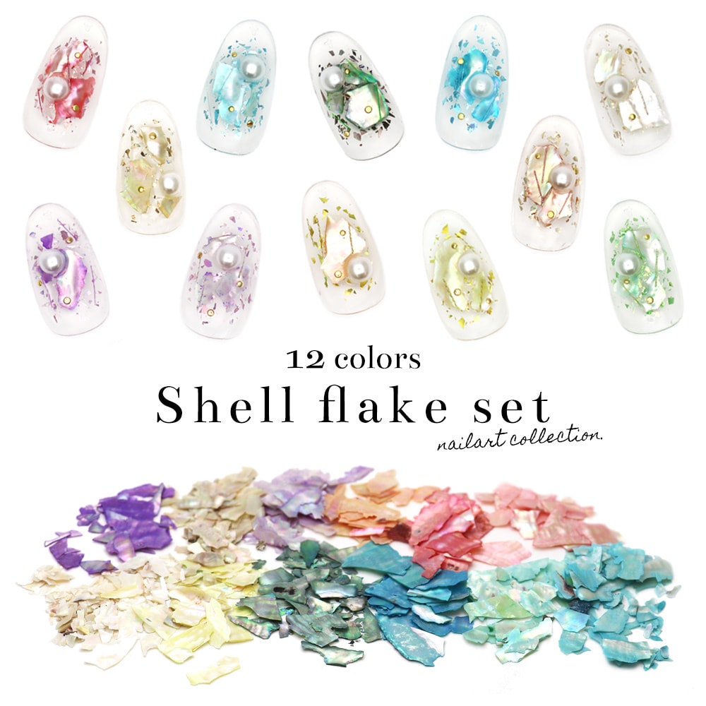 【ネコポス送料無料】【訳あり】ネイルアート シェルフレーク12色セット
