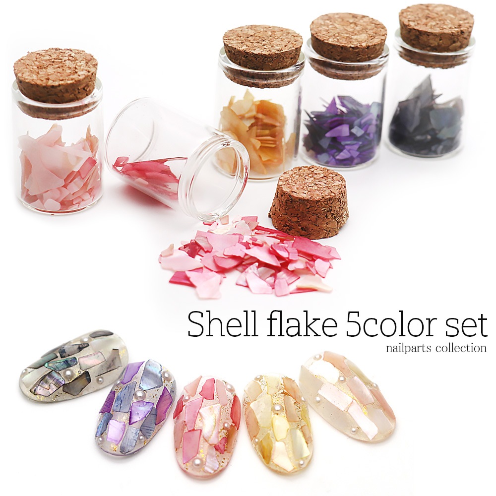 【宅配便限定】ネイルアート シェル コルク瓶入り シェルフレーク5色セット