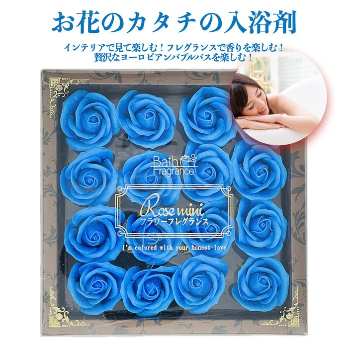 入浴剤 花の形のバスフレグランス 16輪 ミニローズM 青 ブルー プレゼントギフト 可愛い贈り物 記念日 ソープフラワー