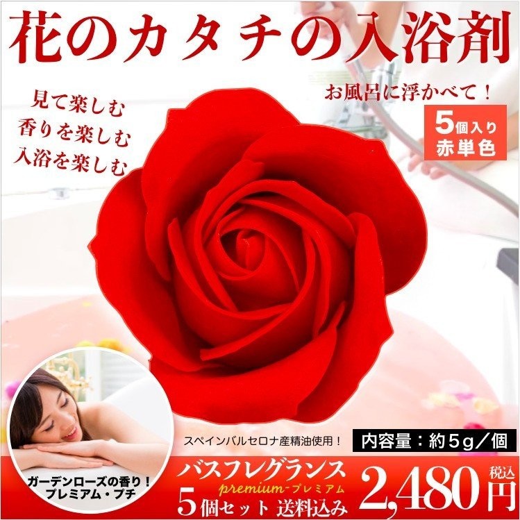 入浴剤 プレゼント ギフト おしゃれでかわいい花の形のバスフレグランス 赤単色 5個セット プチギフト ソープフラワー 浴用化粧品...