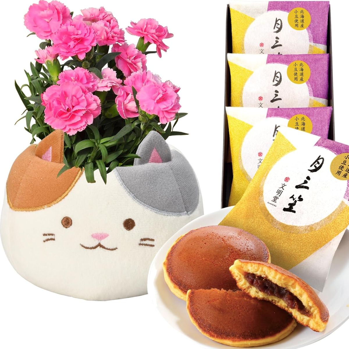 母の日 カーネーション 三毛猫 お菓子 どら焼き 文明堂 母の日ギフト スイーツセット