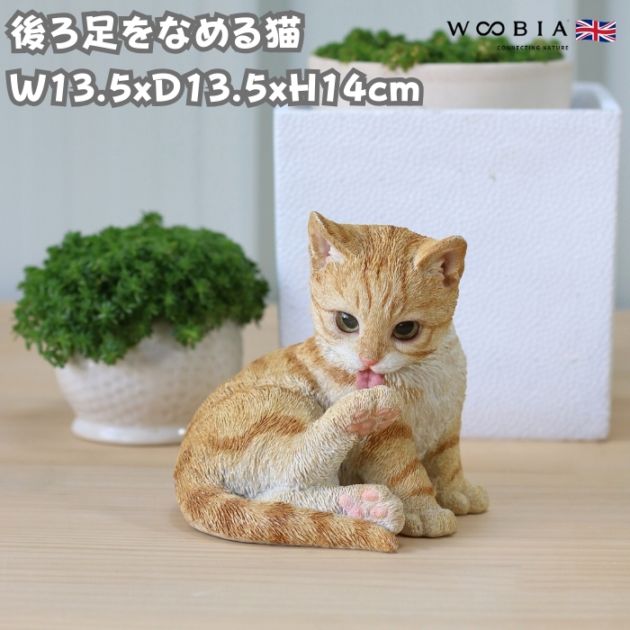 置物 後ろ足をなめる猫 ネコ 高さ14cm woobia ウービア 大きい かわいい おしゃれ ガーデン インテリア オブジェ 可...