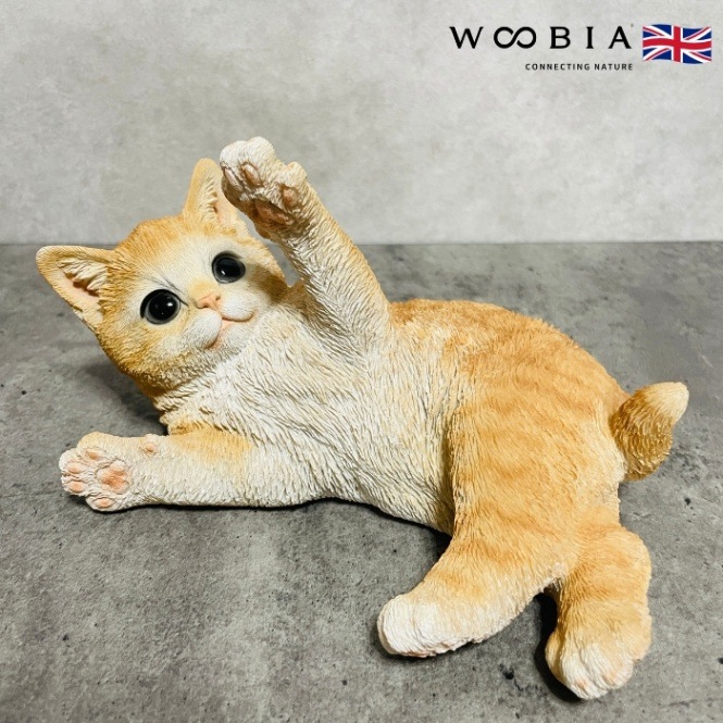 かわいい猫の置物 じゃれる茶トラ子猫 woobia ウービア おしゃれ ガーデン インテリア トイレ オブジェ 可愛い プレゼント...