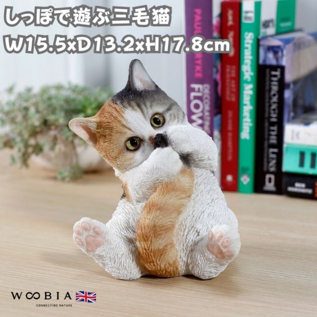 置物 しっぽで遊ぶ三毛猫 ネコ 高さ17.8cm woobia ウービア 大きい かわいい おしゃれ ガーデン インテリア オブジ...