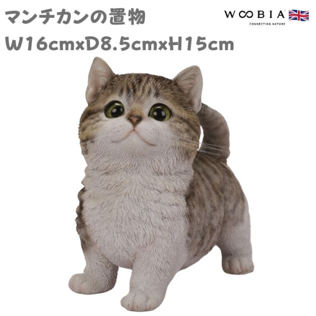 置物 猫 マンチカン サバトラ白 ネコ 高さ15cm woobia ウービア 大きい かわいい おしゃれ ガーデン インテリア オ...