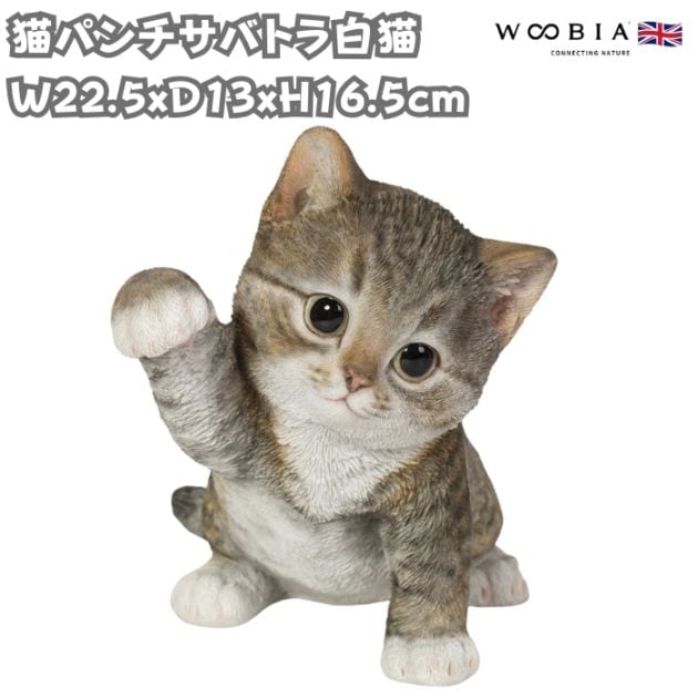 置物 猫パンチサバトラ白猫 ネコ 高さ16.5cm woobia ウービア 大きい かわいい おしゃれ ガーデン インテリア オブ...