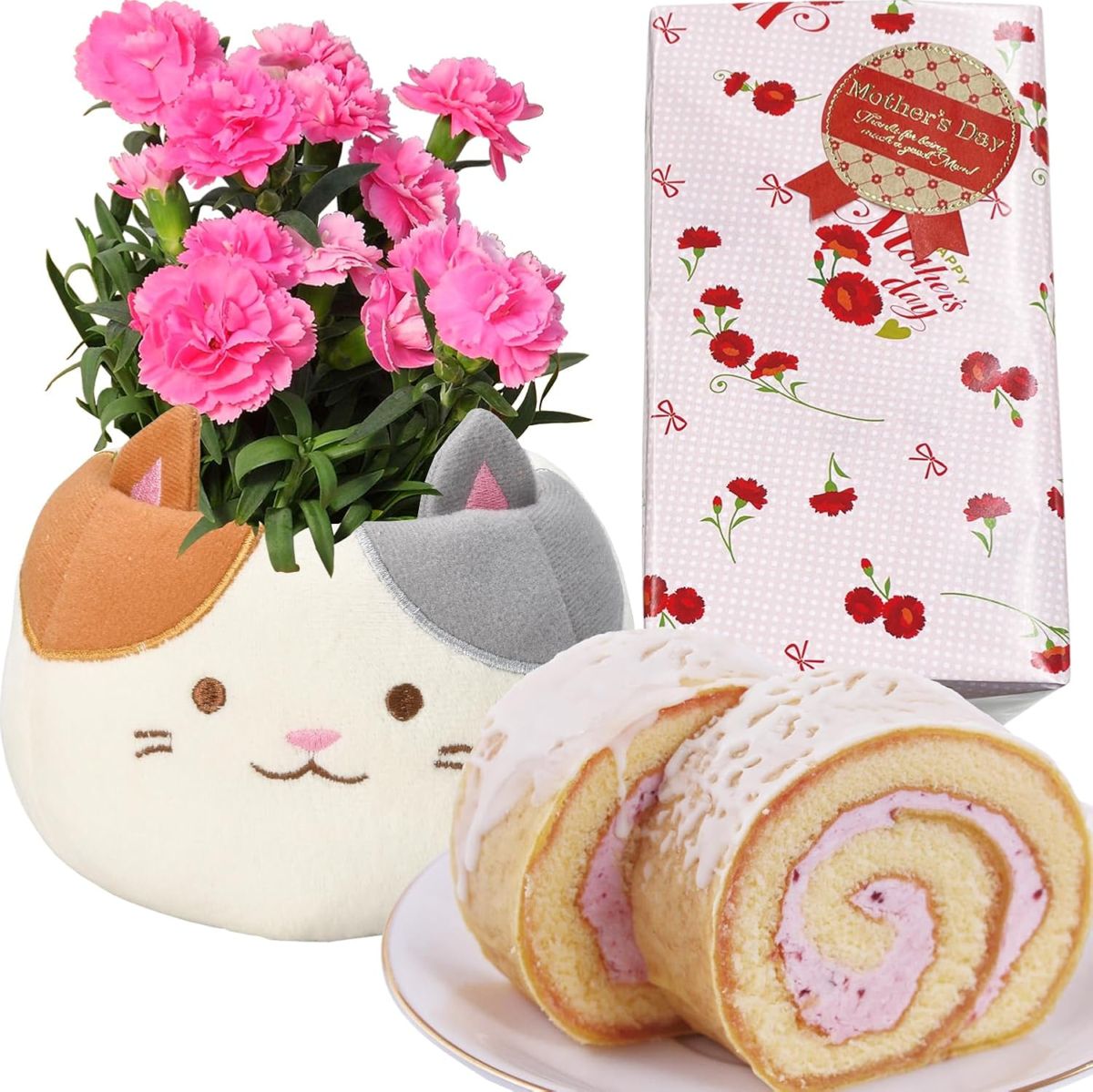 母の日 カーネーション 三毛猫 お菓子 ロールケーキ 母の日ギフト スイーツセット