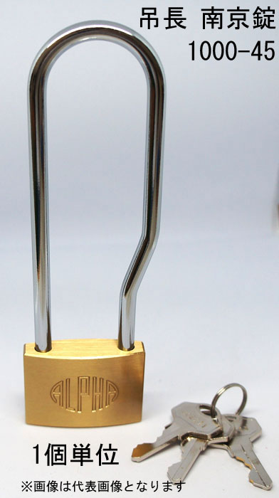 南京錠 アルファ かぎ 吊長タイプ 1000-45mm LS カギ違い キー3本付 1個単位 ALPHA シリンダー錠 真鍮 定番...