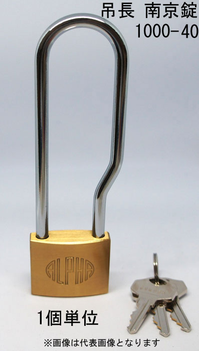 南京錠 アルファ かぎ 吊長タイプ 1000-40mm LS-M カギ違い キー3本付 1個単位 ALPHA シリンダー錠 真鍮 ...