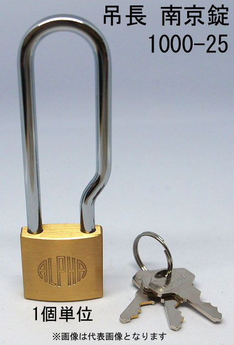 南京錠 アルファ かぎ 吊長タイプ 1000-25mm LS カギ違い キー3本付 1個単位 ALPHA シリンダー錠 真鍮 定番...