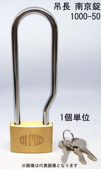 南京錠 アルファ かぎ 吊長タイプ 1000-50mm LS カギ違い キー3本付 1個単位 ALPHA シリンダー錠 真鍮 定番...