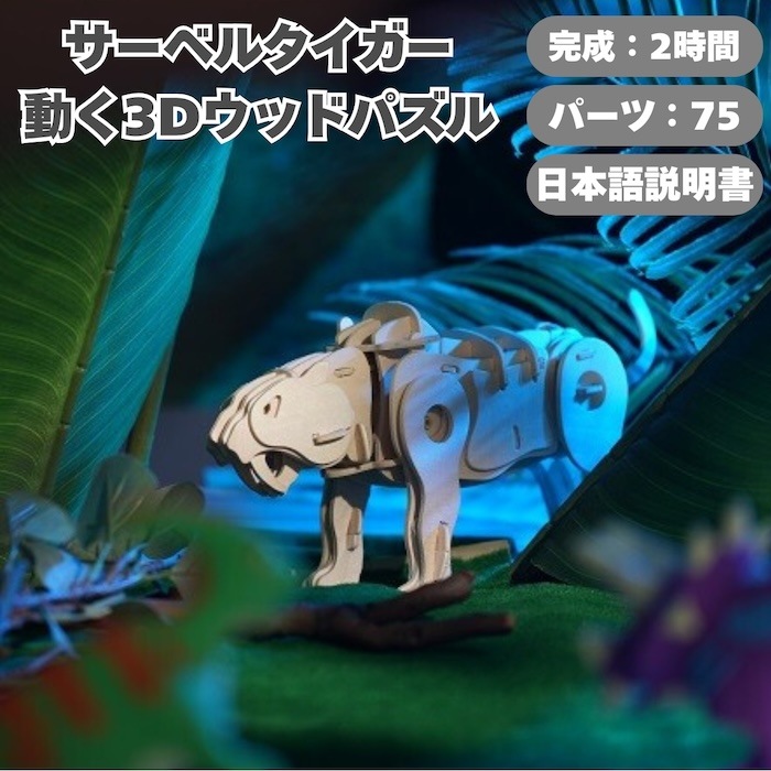 つくるんです A410 サーベルタイガー 動く3Dウッドパズル 木製 組立キット 音センサー ギミック DIY インテリア 雑貨